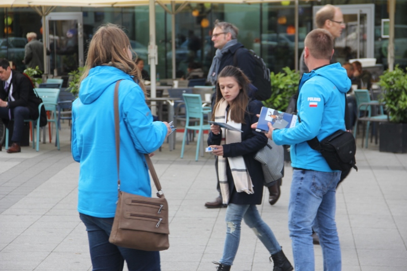 Kolejnym przystankiem teamu promocyjnego był już Hanower. Po zostawieniu rzeczy w hotelowym pokoju niezwłocznie ruszyliśmy w stronę centrum gdzie Michał wraz z Magdą rozdali ponad 200 folderów promujących Łebę i Gminę Nowa Wieś Lęborska przechodniom zapraszając ich do przyjazdu. Pozostałe broszury zostały przekazane do Informacji Turystycznej w Hanowerze, w której Panie bardzo ucieszyły się z naszych odwiedzin i zapewniły, że będą polecać turystom z całego serca nasz region. Rowerzyści dojechali do hotelu po godzinie 19.00 i wszyscy razem udaliśmy się na zasłużoną kolację.